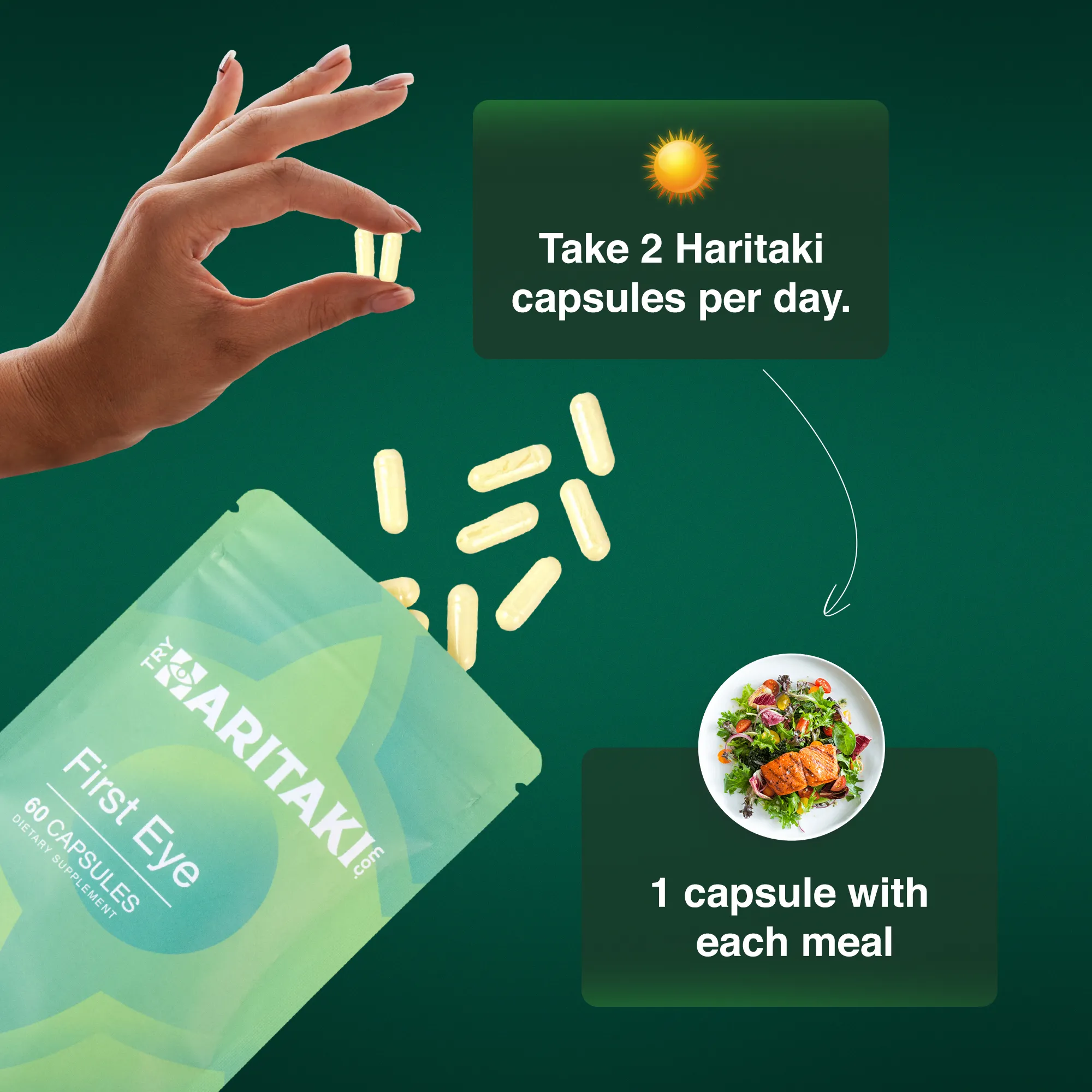 Getting Started Haritaki First Eye Capsules are designed for daily use as part of your wellness routine. Take consistently as directed for best integration into your health regimen.